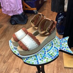 So cute! These sandals were worn once and are really like new. They have a 3 inch platform and are so very stylish. So many outfit options with these cuties!