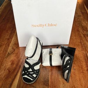 See by Chloe Leather Ankle Strap Sandals, Size 6.5