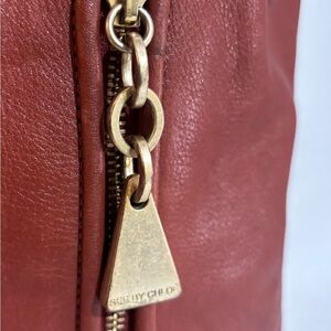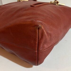 This stylish brown leather tote bag is perfect for any occasion. Its elegant design and high-quality material make it a must-have accessory. Main compartment 3 pockets at interior wall fabric 1 zip closure lining have some stains 2 zip pocket closure at front exterior have some discoloration corners have some marks hight 15.5”wide 15” depth 4” strap drop 9” The dimensions are based on approximately measurements before placing an order please check take a moment to view all photos using feature for a closer look