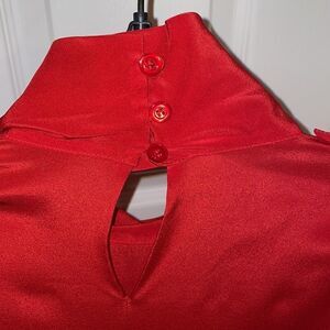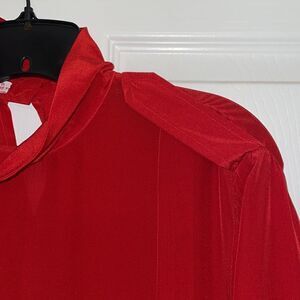 See by Chloe Long Sleeve Red Silk Dress with pockets, size 6. Excellent used condition! Buttons on back of neck. Shoulder strap accents. Perfect for Christmas or Valentine’s Day!