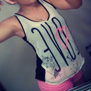 It's extremely comfortable, it's a little longer in the back then the front. The front is see through its a medium. Says love on the front, but it's just sitting in my closet haven't worn it forever , but perfect condition no holes or anything.