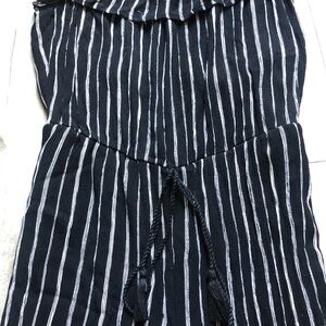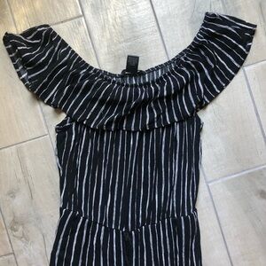 See you Monday off the shoulder striped ruffle jumpsuit. Size L