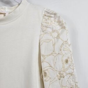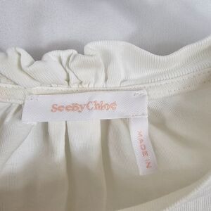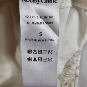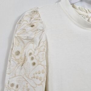 See By Chloe Long Sleeve Top with Embroidered Eyelet Sleeves in White - Size S