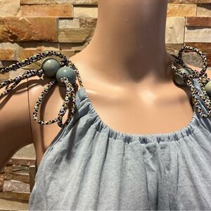 Elegant soft blue mini dress with gathered details. Ideal for stylish outings. Excellent condition.