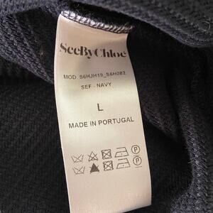 SeeByChloe Navy Blue Eyelet Sleeve Sweater Top Drawstring Size Large