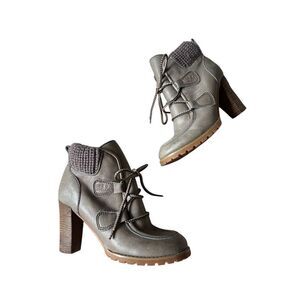 See by Chloe Leather Lace Up Booties Boots EU 37.5 Gray Heeled