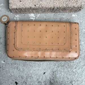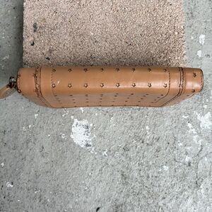 Check out the pictures this wallet is in good condition but does show signs of where so please look at the pictures. Measuring across the front is 7.5 x 4 can hold up to 12 credit cards. Inside needs slight cleaning.
