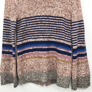 Caramel Brown mid weight knit with blue, mustard yellow and pink metallic stripes