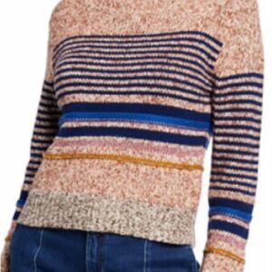 See by Chloe Striped Wool Blend Crew Neck Knit Sweater in caramel
