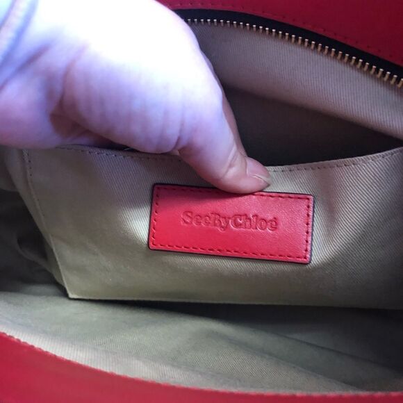 SeebyChloe Tilda Red Leather Handbag w/Sueded Bottom, Missing Crossbody Strap