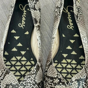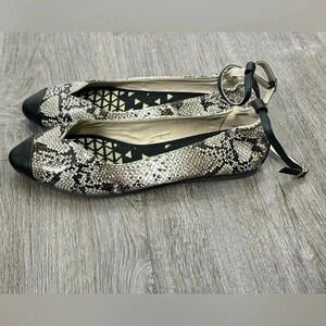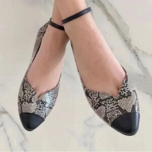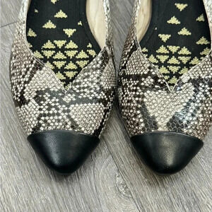 Seecaas Ella Ballet Flat Black Cap Toe Reptile Snake Print Size 9 Shoes