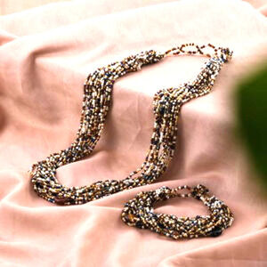 Seed Bead Necklace Bracelet & Earrings Bead Necklace Earring Multi Strand Black