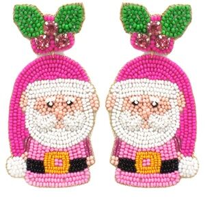 It sounds like you're describing a pair of earrings featuring a Santa Claus design made from seed beads. Here’s a more detailed description: