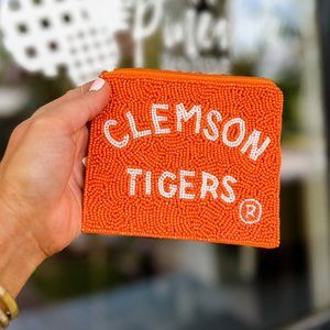 Seed Beaded CLEMSON Football Team Zipper Coin Makeup Storage Pouch NEW NWT