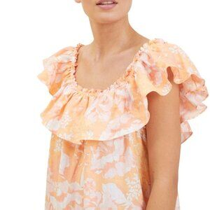 Seed Heritage Floral Frill Midi Dress Pure Linen Short Sleeve Ruffle New Size 8
