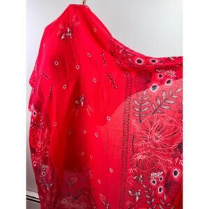 Seed Heritage Red Navy Bandana Scarf/Wrap Shawl Floral Around Neck Raw Hem