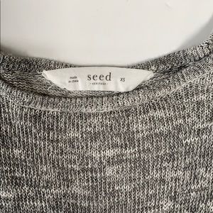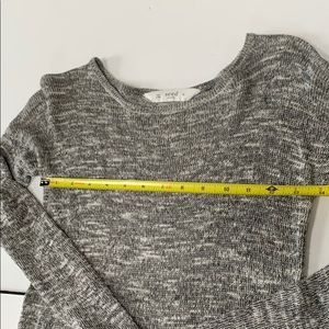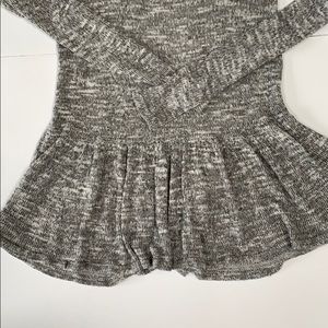 Pretty soft Seed Heritage Sweater with 7 “ ruffled bottom. Very chic! Total length 24”. Threads are a combo of black and white create this pretty grey tone sweater.