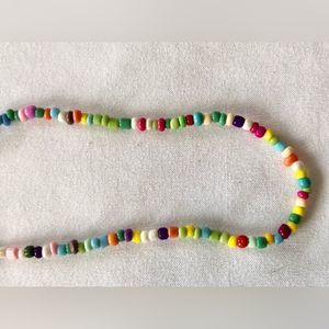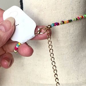 Colorful seed bead necklace 15” + 2 1/2” extender, approximate 3 mm beads pastels and darker colors. Fashion jewelry, gold tone