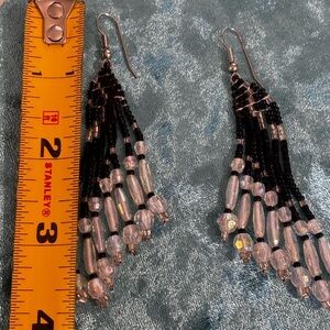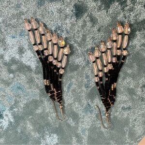 Seed beads acrylic rhinestones aurora borealis beaded pierced earrings dangle