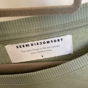 Seek Discomfort Green Crewneck Sweatshirt with Rose Design (Size Large)