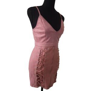Seek The Label Dusty Pink Faux Suede Lace Up Bodycon Mini V Neck Dress Size S