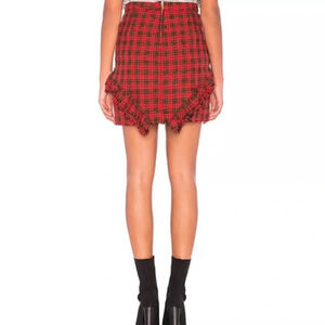 Seek The Label Red Black Plaid Punk Skirt Asymmetrical Ruffle Raw Hem Size S NWT