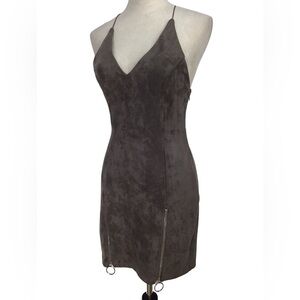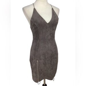 Seek The Label Taupe Vegan Suede Strappy Open Back Mini Dress Women Size Small