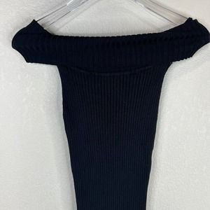 Seek Women's Ribbed Off The Shoulder Sweater Dress Short Sleeve Black Size Small