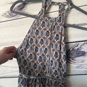 Seek the Label Beige Patterned Cutout Open Back Romper