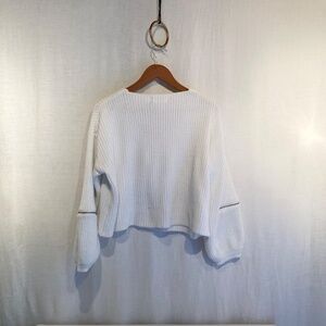 Seek the Label White Chenille Sweater with Zip Sleeves Women's Small V NeckFLAWS