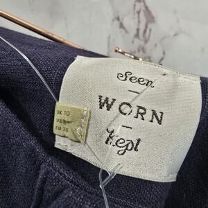 Seen Worn Pants Womens 30 Blue Linen Wide Leg High Rise Exposed Button Fly