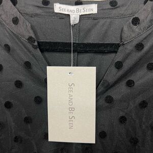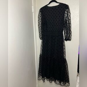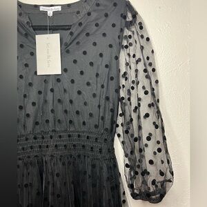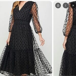 Seen and Be Seen black polka dot dress with sheer puff sleeves