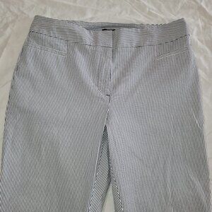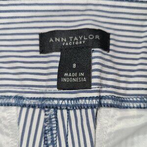 Seer Sucker Ankle Pants Blue White Stripe Nautical Summer Pockets Ann Taylor Factory