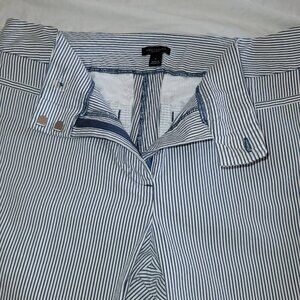 Seer Sucker Ankle Pants Blue White Stripe Nautical Mid Rise Pockets Ann Taylor