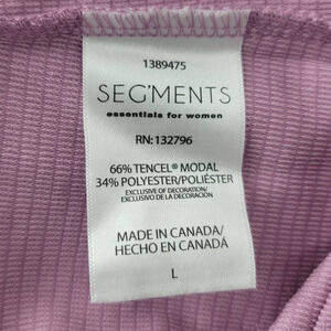 Seg'Ments Tencel Light Lavender Athletic Laying Long Sleeve Top L NWT Made in Canada Eco-Soft Technology, Botanic Origin, Enhanced Breathability, Long Lasting Softness. 66% Tencel Modal 34% Polyester. Approx. Measurements (flat) Chest 21.5" Length 27" Sleeve 16" Bin 7870