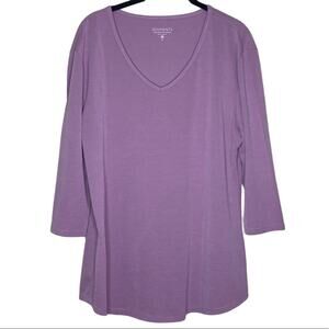 This Segments Essentials for Women top features a light purple color, ribbed material, long sleeves, and v-neck.