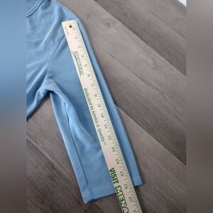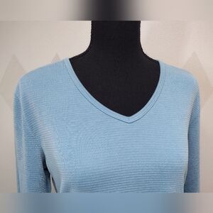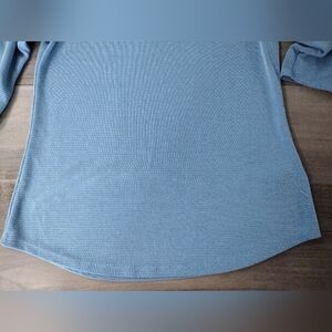 Seg'ments modal tencel blend 3/4 sleeve top with textured fabric. Curved hem. Great feel to the fabric. Made in Canada. Size M.