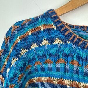 Segrets Sun Prints Teal Navy Tan Fair Isle Aztec Grandpa Chunky Knit Sweater