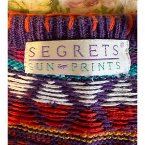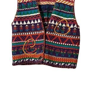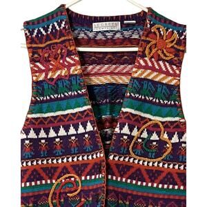 Segrets Sweater Vest Womens Size S Sleeveless Knit Multi Color Button Up Boho