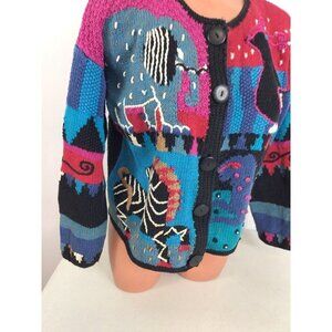 Segrets Vintage Cardigan Sweater Fantasy Animals Womens Small