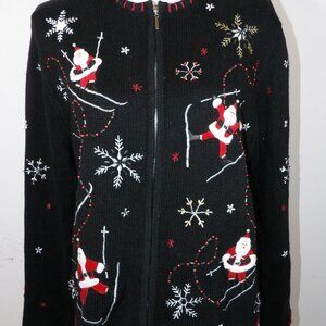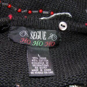 Segue Ho Ho Ho Christmas Sweater Cardigan Size L Black Women's Zip Front