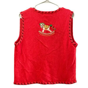 Segue Red Ugly Christmas Rocking Horse Button Front Vest Size Small