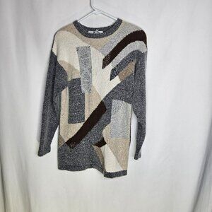Segue Silk Angora Rabbit Hair Lambswool SweaterGray Tan beaded Embellished S