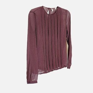 Seidensticker Blouse Women’s Long Sleeve Maroon Pleated Front Top Size 34 Small.