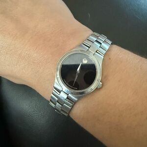 23mm case size please feel free to ask me any questions, will possibly need a new crystal as it does have some scratches on it