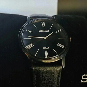 Seiko Analog Quartz Solar Black Watch 9N0100, with box and manuals