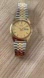 Description: Rare vintage watch! Automatic winding 17 jewels. New two-tone stainless stretch bracelet. Gold-tone dial with luminous and gold-tone hands and markers. Day/month and date windows. Just cleaned and serviced. Works well!