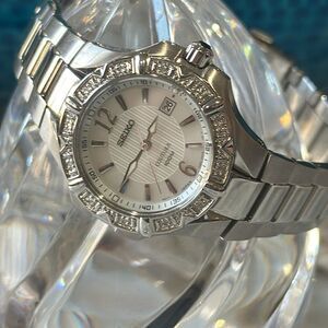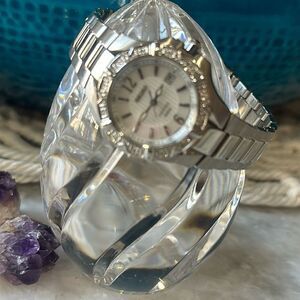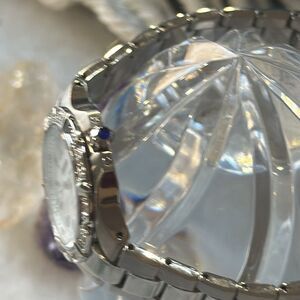 Stunning watch. Crystals around face. Date. Blue crystal on dial.