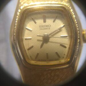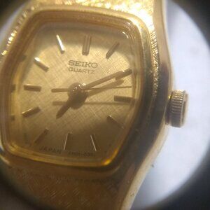 Up for sale is a Seiko Dress Watch Quartz 4N01-5021 All Gold Narrow Band New Bat Clear Great !!!!