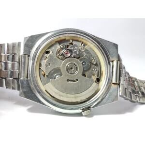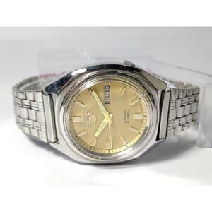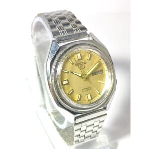 Elegant Seiko watch with a gold dial. Silver stainless steel bracelet. Automatic movement. Day-date display.